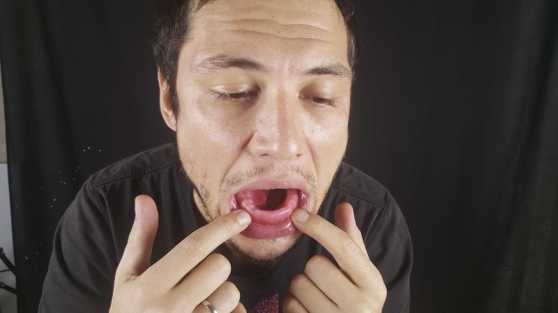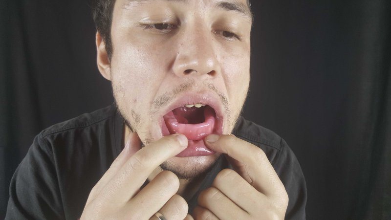 Вид снизу, так же отрезано ножницами, все лишнее, что мешается во рту