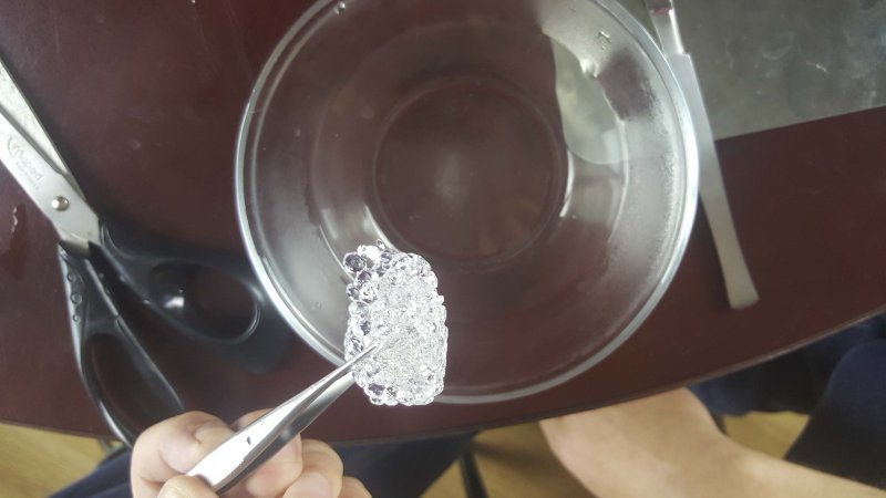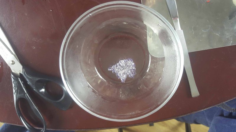 Итак, берем определенное количество пластика в моем случае это три ложки и заливаем горячей водой. Немного подождав,около минуты, все гранулы станут прозрачными, это означает что пластик готов к работе