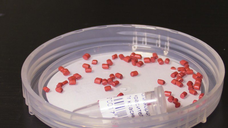 добавляем краситель, в данном случае половина такой мелкой гранулы, краситель тож полиморфный