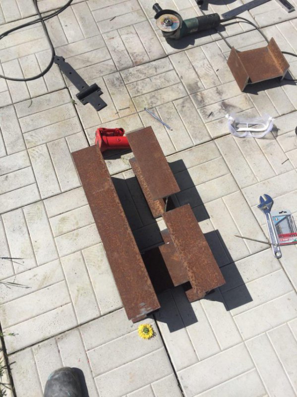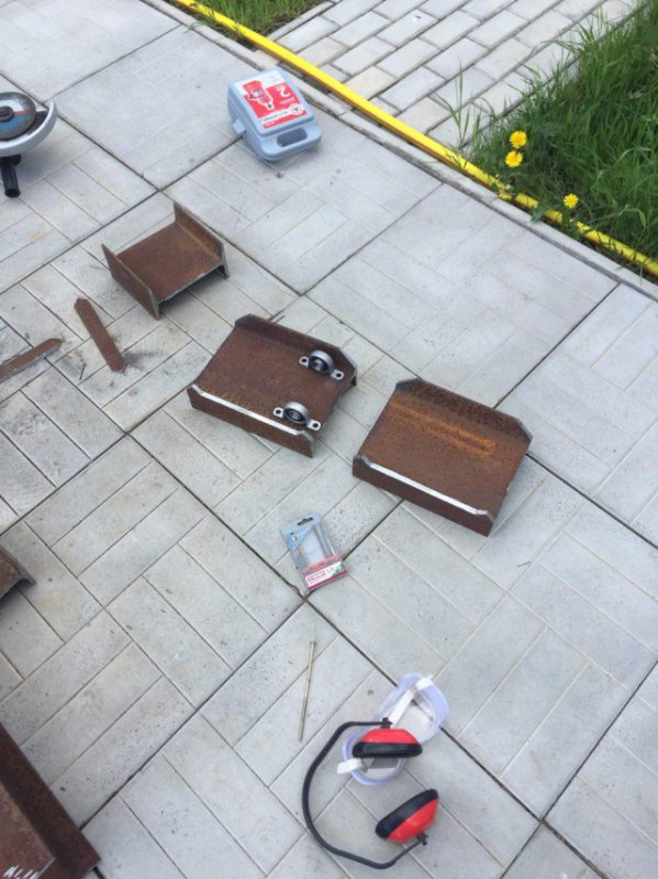 Просыпаемся утром в воскресенье, кофе-сигаретка. Тащим конструкцию на покраску на солнечное место. Все сварочные швы уже обшлифованы и сама конструкция отшкурена от ржавчины. Красить будем снизу, конечно.