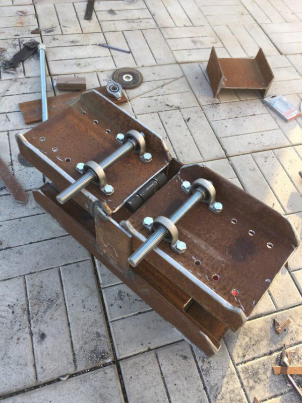 Получилось вот так. Конечно, нужно доделать "руль", чтобы удобно крутить все это, это все будет чуть позже, когда поменяю валы.