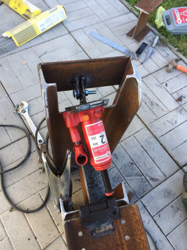 Площадку не стал прикручивать болтами, приварил к домкрату точками. Он мне для других нужд не потребуется, если сломается - два раза чиркнуть болгаркой и платформа отделяется.