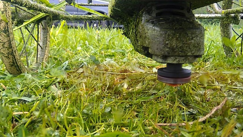 вставил леску, отмерил нужную длину, чтоб не цеплял за колеса, лишние откусил