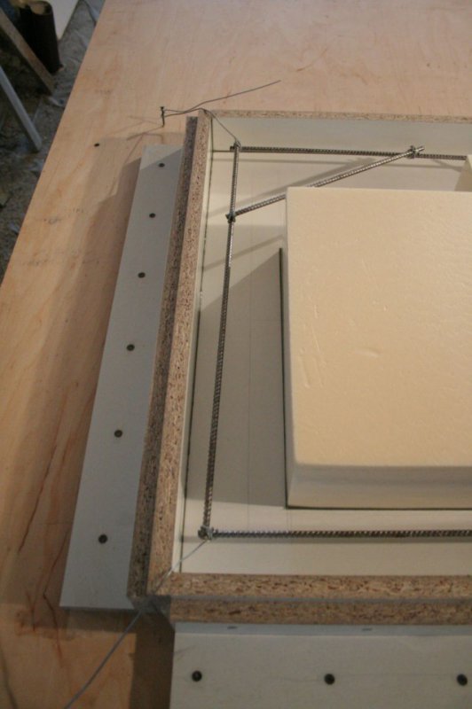 Арматуру на растяжках подвесил, что бы не лежала на форме