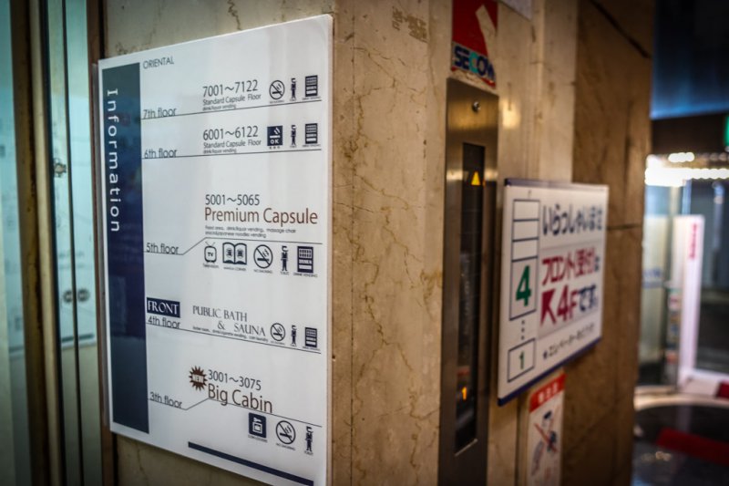 Правильное пользование отелем начинается с лифта. Вам нужно подняться на этаж, где находится ресепшен. Ведь это Япония, и вовсе необязательно вход будет на уровне земли, ведь это дорого! В данном случае нам нужно подняться на четвёртый.