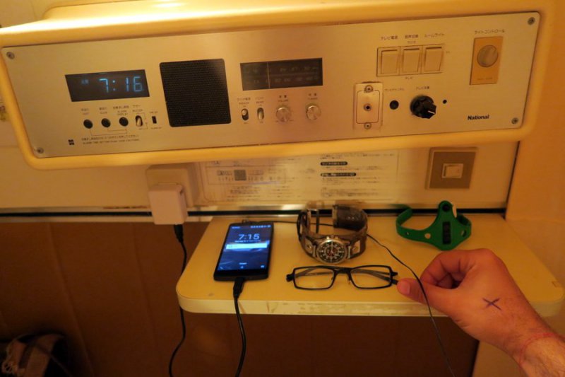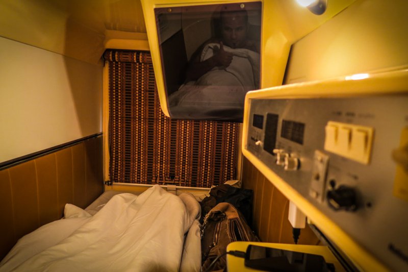 Но уже поздно, а завра ранний подъём. Короче, пора мне спать. В капсуле есть розетка, можно поставить на зарядку все девайсы. А вместо двери тут плотная шторка, которая опускается и загораживает вас от других любопытных гостей. Зато она пропускает воздух, позволяя вам не задохнуться за ночь в капсуле.