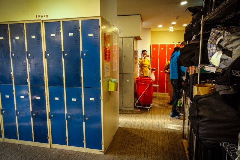 В шкафчике меня ждёт отельная форма. Это просторные штаны, и рубаха на завязке. Последний писк моды - здесь все так ходят. Рядом с переодевалкой умывальники - тут можно умыть лицо, почистить зубы, побриться, ну и вообще всячески привести себя в порядок.