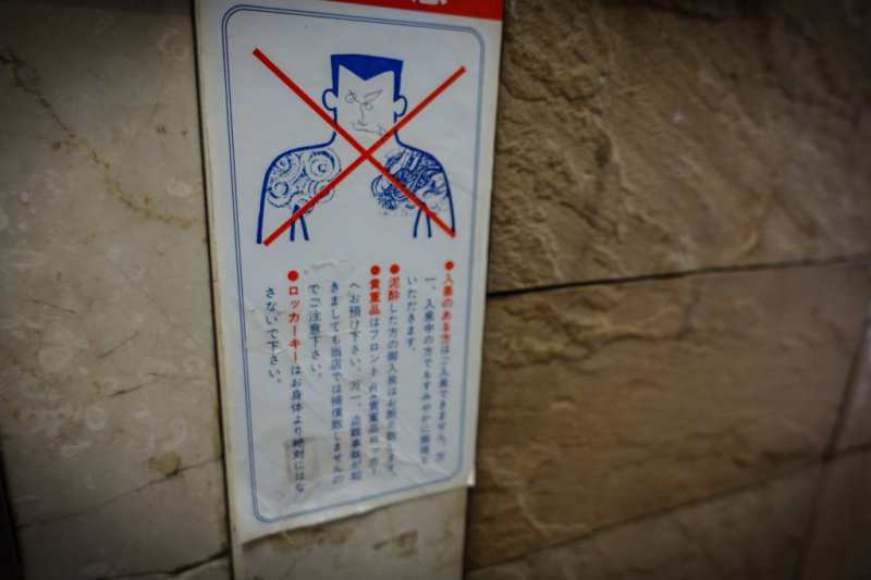 Прямо перед входом в лифт висит табличка, запрещающая людей с татуировками. В Японии такие наколки - символ якудзы. В онсен все ходят голыми, и администрация не желает вызывать дискомфорт других постояльцев близостью чувака из местной мафии.