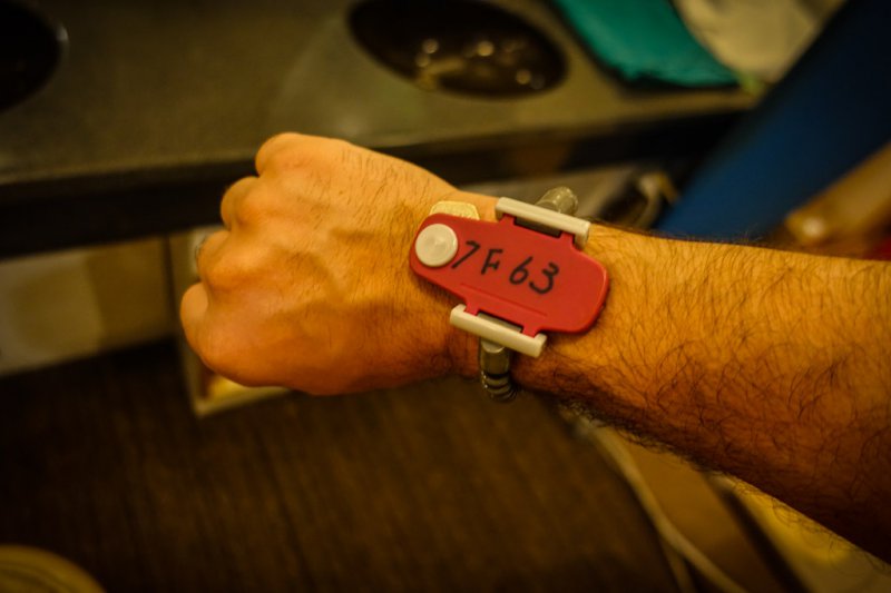 Вот он, на пластмассовом браслетике, чтоб не потерять в баньке. Мой номер 7F63, это значит моя капсула на седьмом этаже. Саму капсулу ключ не открывает, он только для локера, где я оставлю вещи, ну и чтоб в случае чего, персонал знал, за какой номер у меня заплачено.