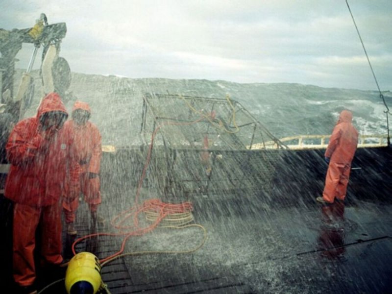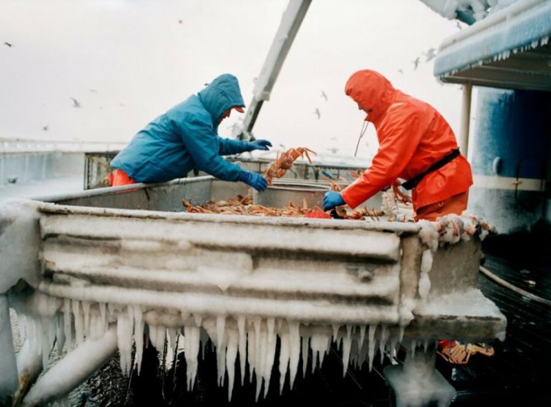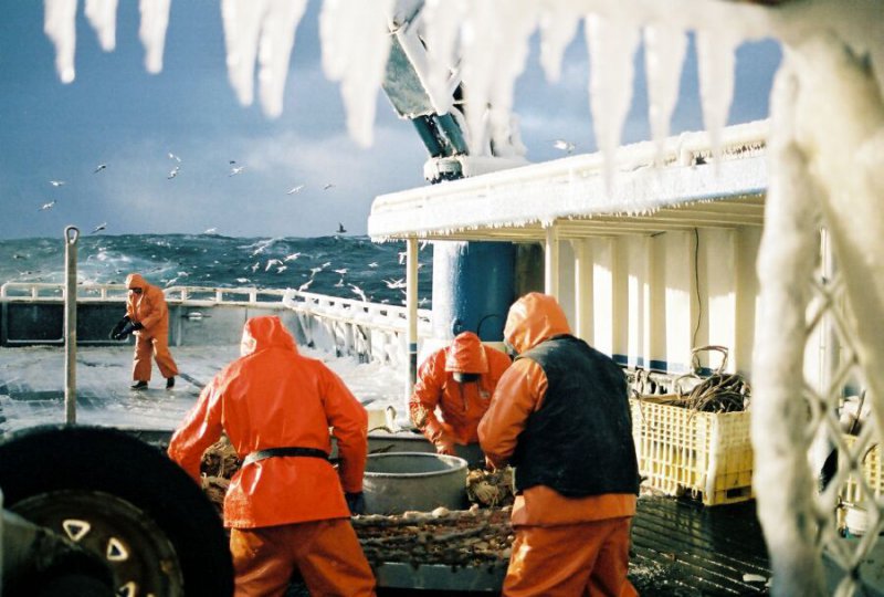 В сезон лова в море рыбаки находятся в условиях минусовой температуры, ветра, достигающего 100 км/ч, и штормов с волнами высотой с 4-этажное здание. При этом спать им удается лишь по три-четыре часа в сутки.