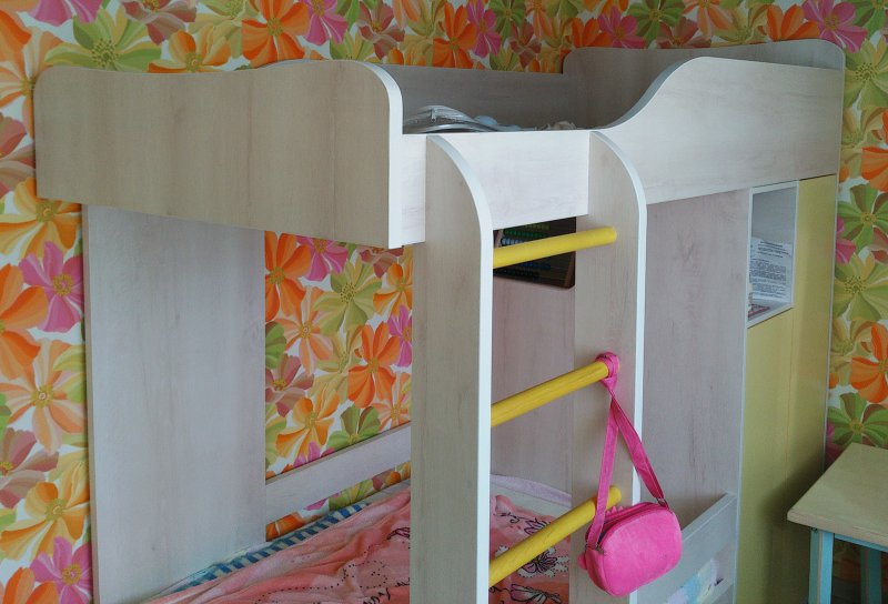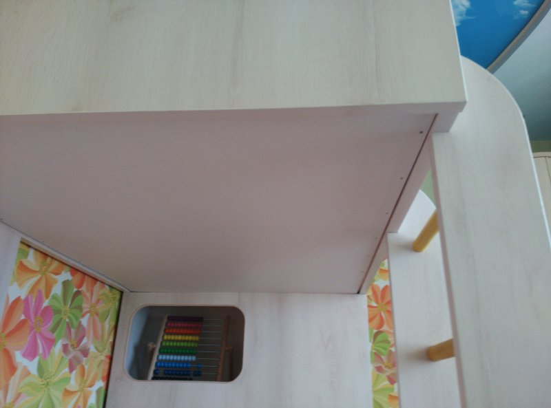 Лестница склеена можно вешать на место. Вторая ее функция поддержка верхней кровати.