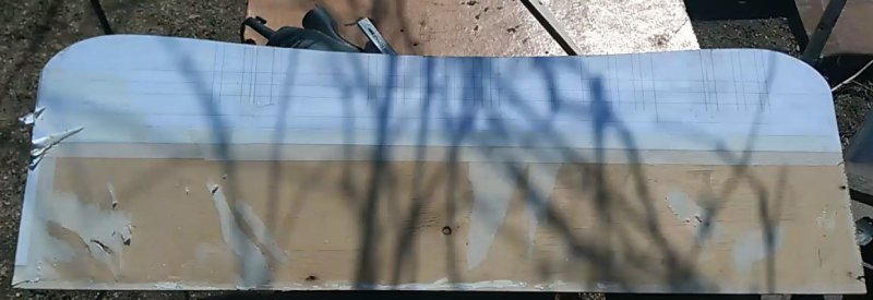 Для изготовления криволинейных деталей сделаны шаблоны из фанеры. Необходимая кривая нарисована в Visio, распечатана, наклеена на фанерку и выпилена. Вот один из них: