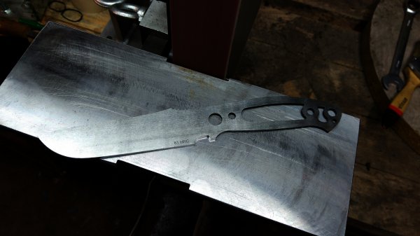 CPM-3V это весьма ударостойкая сталь с большими механическими возможностями. При слесарке клинка было принято решение сводить в 0,40-0,5мм, сказано-сделано 0,45мм, заточка по 20* на сторону.
