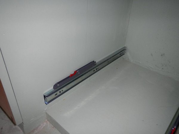 Рельсы и доводчики для ящиков.