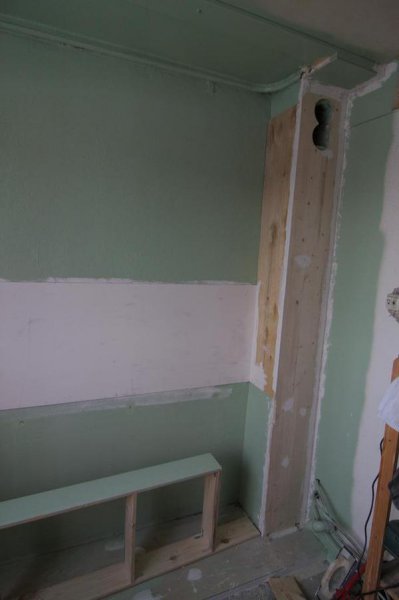Вентшахта закрыта щитами. Да, никакого ДСП! Только фанера и мебельные щиты.