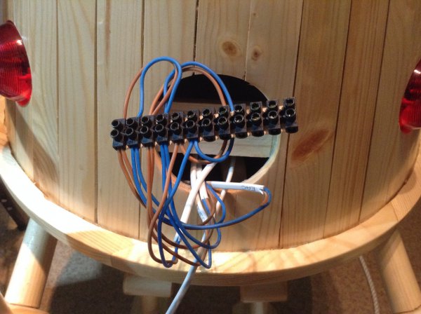 Красные лампочки взяты из арсенала ОПСников. Это указатели выхода "Астра" и "Молния" 12 вольт. Глаза выпилены из пластикового плафона и подсвечены светодиодной лентой, как и жопа. Всё покрыто яхтенным лаком в один слой (не люблю лак,а куда без него?).