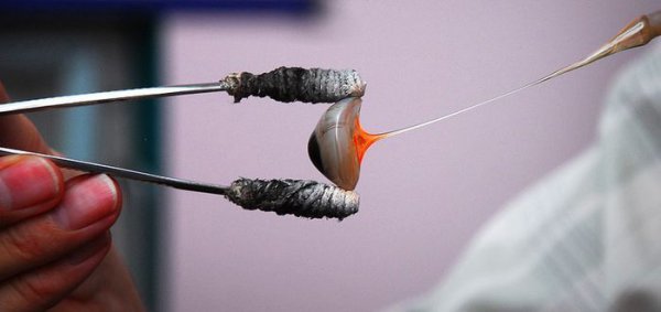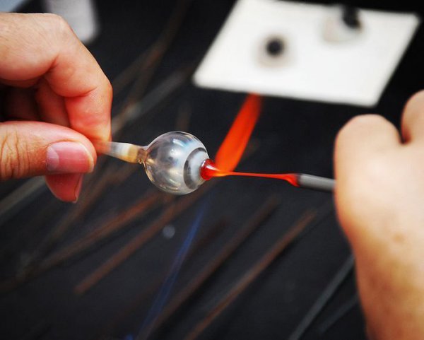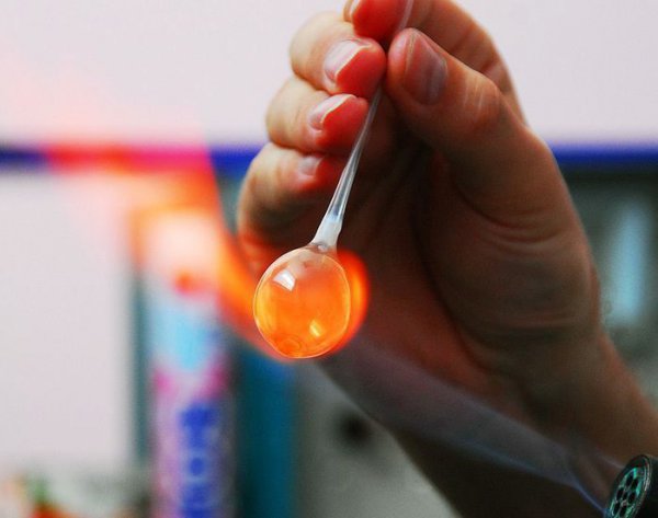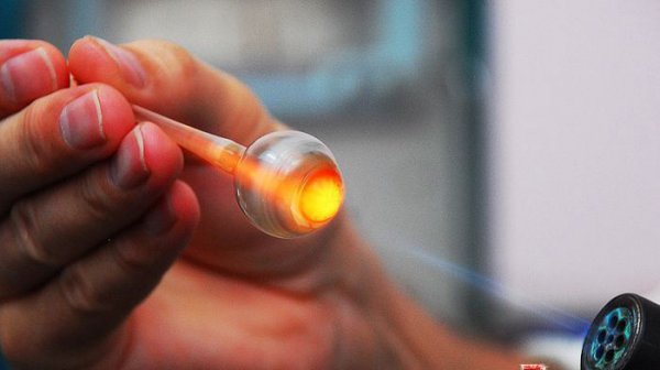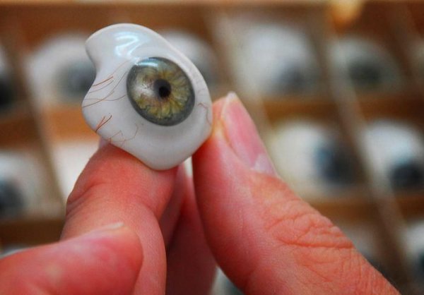 Стеклянные глазные протезы изготовляются методом выплавки из специального материала. Для начала берётся трубочка из криолита, расплавляется и отделяется лишь нужная часть. В итоге получается форма с двумя стержнями по бокам. Внутри этого всего - пустота, и деформация формы осуществляется благодаря тому, что в одну из трубочек дуют. Мастер выдувает из этой формы шарик.