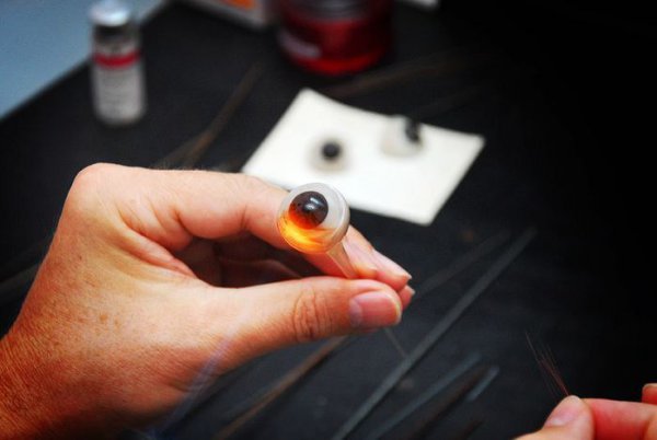 Когда зрачок готов, из шарика выплавляется эллипсоидная форма, а на ней - кровеносные сосуды, чтобы придать еще большую реалистичность глазу.
