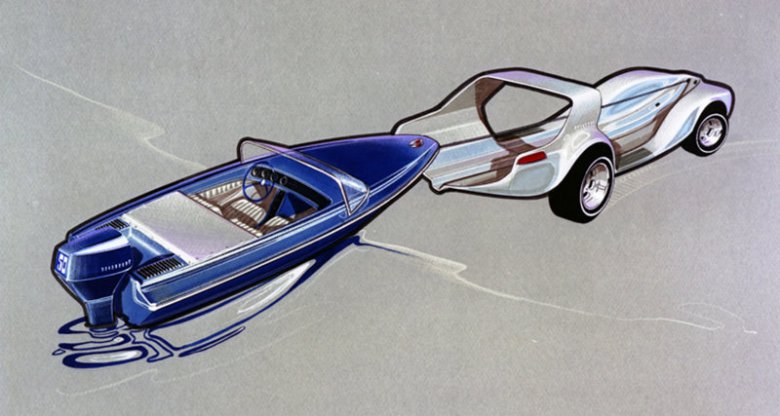 Великий промышленный дизайнер Брукс Стивенс спроектировал в своей жизни множество знаменитых автомобилей. А однажды, в 1969 году, он получил заказ на пляжный багги-амфибию, и подошёл к вопросу так необычно, что машина, так и не попавшая в производство, стала звездой автосалонов. Потому что автомобиль и лодка в его концепте были отдельными частями, складывающимися в пазл.