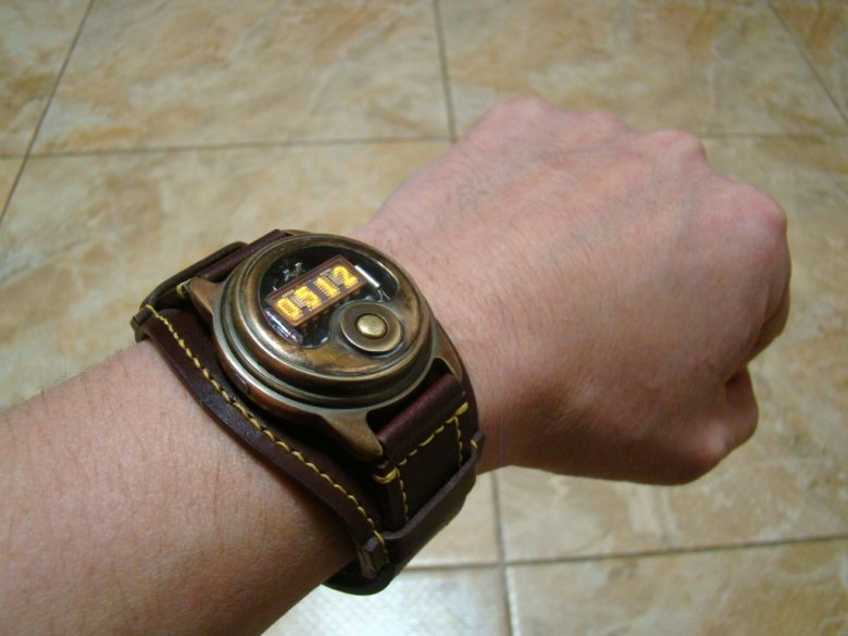 Дальше осталось их только собрать. Ремешок на этом этапе - временный тряпочный. Готовый кожаный я подобрать не смог, а заказанный у ремешковых дел мастера еще не был готов.