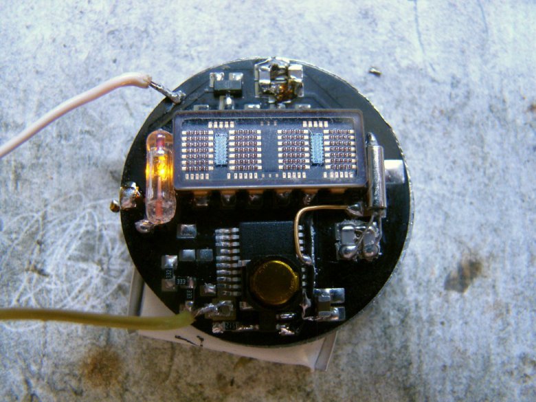 Основной режим работы часов - глубокая спячка. При нажатии на кнопку индикатор включается, показывает время и через 5 секунд снова отключается. Если нажать на кнопку повторно, часы будут выводить минуты/секунды, теперь уже в непрерывном режиме.
