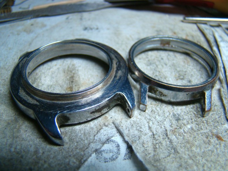 Как-то знакомый часовщик отсыпал мне несколько десятков корпусов еще советских времен, два из которых и послужили донорами для этих часов.