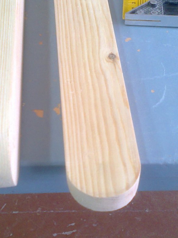 Режем рейки для ножек стола длиной 950 мм, для подстолья - 780 мм и закругляем их.