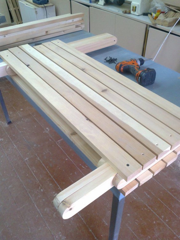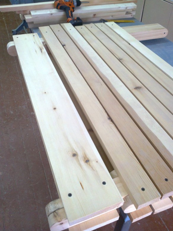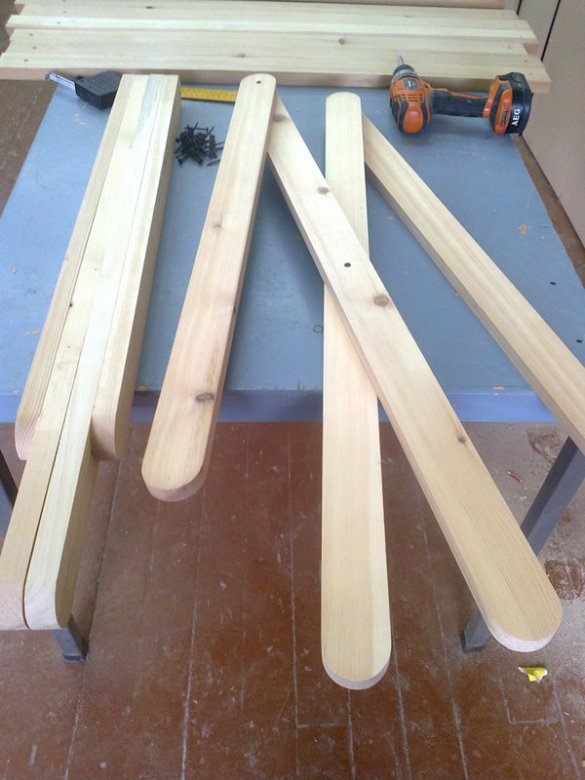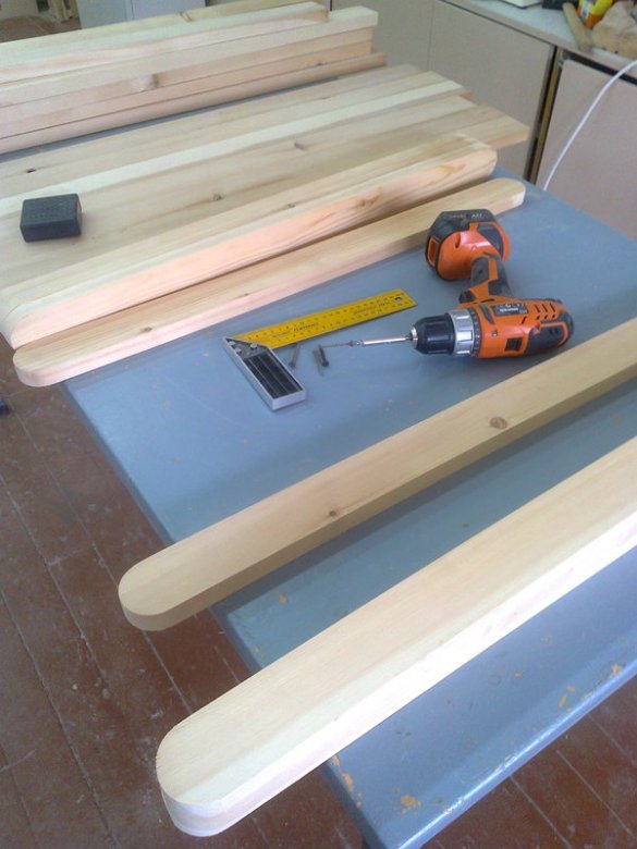 Для сборки нужны саморезы длиной 41 мм, поскольку толщина реек 22 мм.