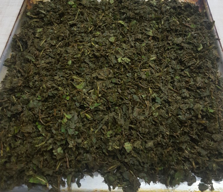 Подготовленные листья следует на 1-2 часа подвялить в тени. Так как наши заготовленные растения только-только начинают цвести, период подвяливания увеличим до 8 часов, это стимулирует лучший выход сока из листьев, что обеспечит стабильную ферментацию и, как следствие, поможет избежать силосных ноток в готовом чае.