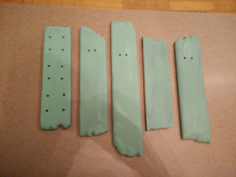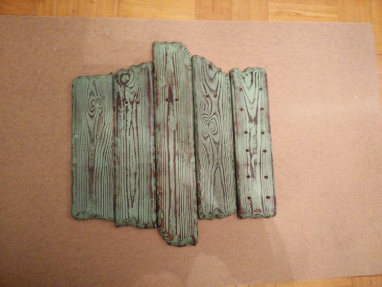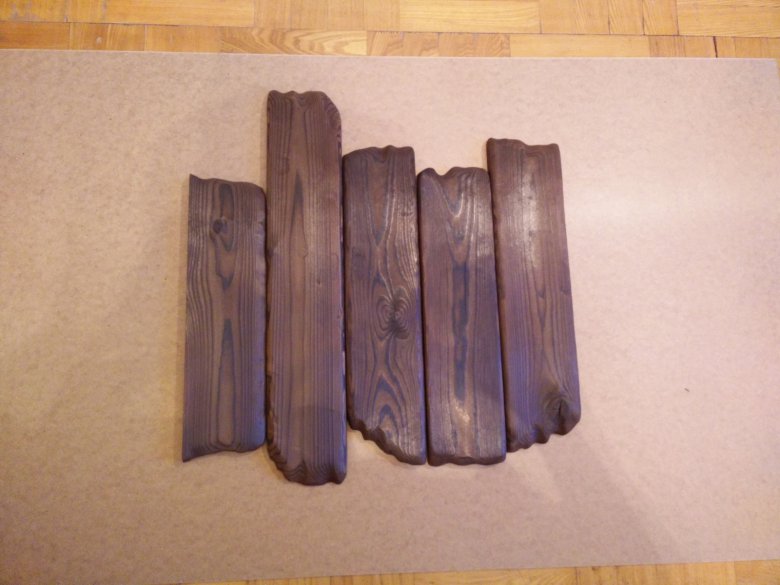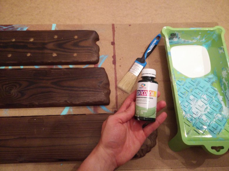 Красим не особо тщательно. Наносим один слой, главное мазюкать только вдоль волокон дерева. Ждем пока все это дело подсохнет.