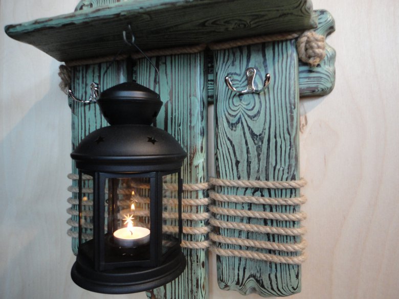Оставалось пару сосновых досок и кусок каната. Морская тематика напрашивалась сама собой.