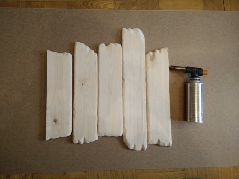Вот что должно получиться. На данном этапе, чем грубее и хаотично делаем, тем лучше. После берем газовую горелку (у меня эта штука для розжига угля) и обжигаем дерево. Обжигаю до появления трещин на дереве.