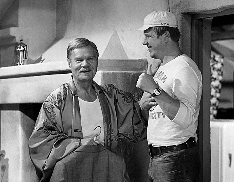 "Моим партнером был Михаил Кокшенов - Степу играл. И была сцена, где мы мчимся на мотоцикле на скорости 90 км. Когда я сел, чувствую - что-то мягкое под ногами. Смотрю, а там не фанера даже, а картонка. Знаете, как у нас в кино бывает: берут старый разваленный мотоцикл, покрасят его, и он идет как новый. И когда оператор сказал: "Михаил Иванович, давайте еще разочек снимем", я говорю: это уже без меня, езжайте сами. Думаю, на втором нога как провалится - привет, прощай "Спортлото".