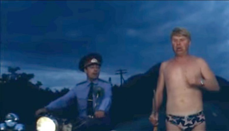 Марафонец - в данном случае Степа. Свои отчаянные поиски он ведет не только на земле, но и под водой. И вот вроде бы напал на след обладателя заветной бумажки. Выскочив из воды, Степа в одних плавках мчится к Сан Санычу, чтобы поделиться своим открытием. До города далеко. Ночь застает героя на полпути, Степу догоняет милиционер на мотоцикле. Почему, дескать, бегаете в столь экзотическом виде?..