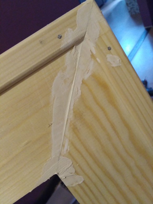 Учитывая, что паркетки у меня нет и углы я пилил буквально на коленке, немного шпатлёвки оказалось очень кстати.