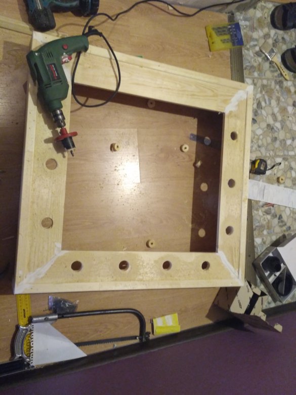 Кстати, не верьте рекламе Леруа, про распил всех и вся. Как выяснилось, пилить в 45* они не умеют, чем очень меня расстроили. Пришлось самому корячиться без необходимого инструмента.