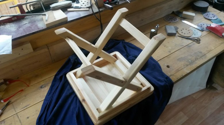 Вклеил распорные планки (в натяг), дополнительное усиление ножек в месте крепления к сиденью, что позволит избежать расшатывания.