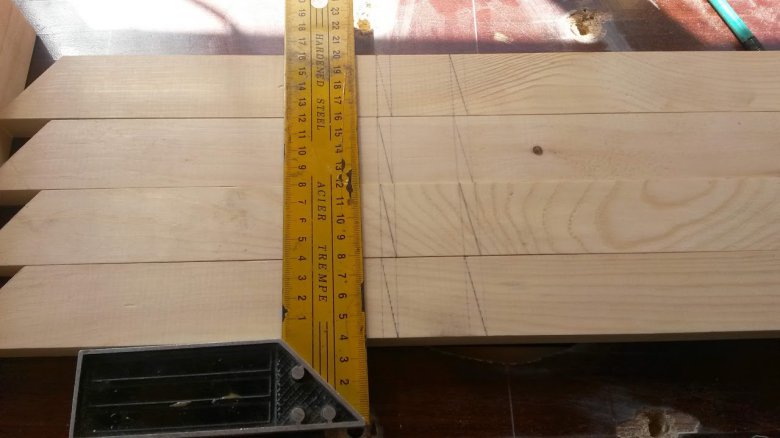 Все перемерил заново, добавил еще одну ламель и все сошлось. Только это было ошибкой. Предполагалось, что табурет будет "кубическим" со стороной в 36 см, в итоге он получился кубическим, но со стороной 40 см. Чуть шире и выше чем предполагалось.