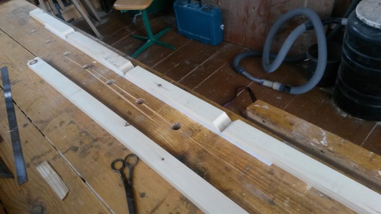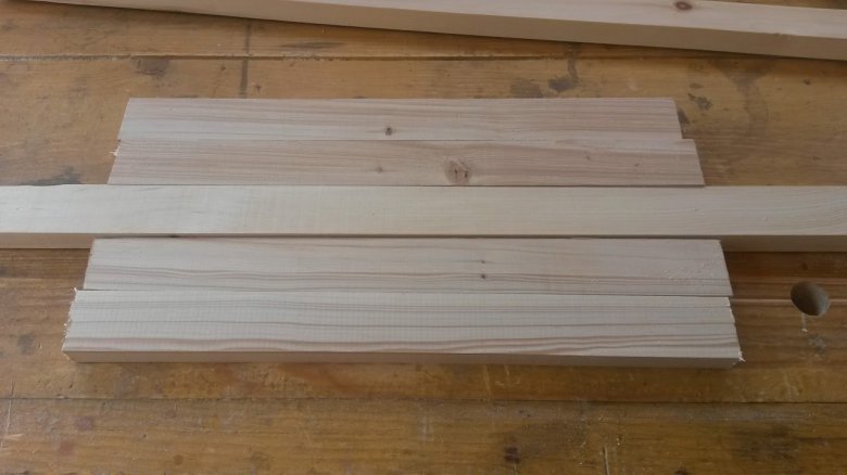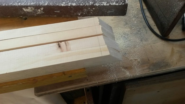 Пока сиденье склеивается, изготавливаю внешнюю обвязку. И тут я понял, что мне повезло, по не внимательности, один приобретенный брусок был явно не сосновый. Что это за древесина я не понял, но цвет другой, обрабатывается легче хотя и тверже сосны.