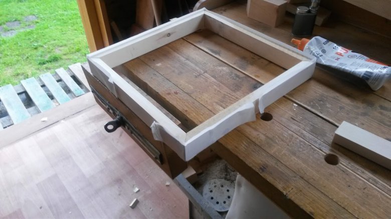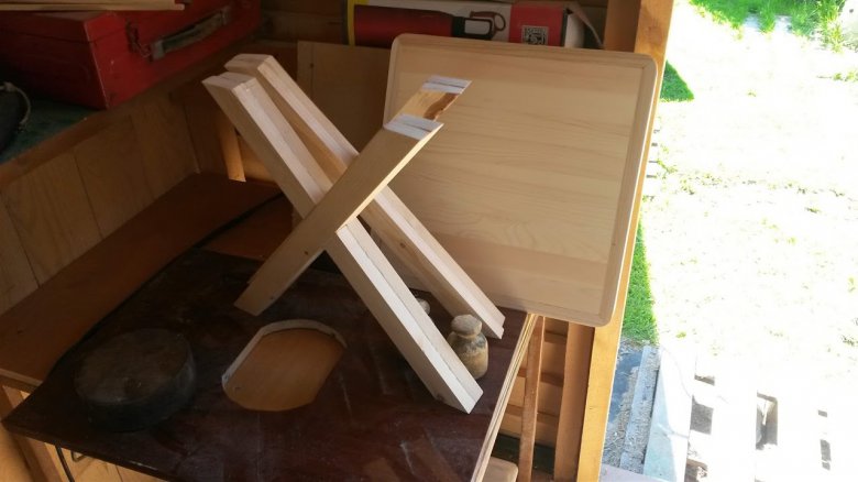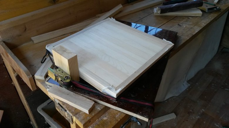 Ну и собираю все в кучу, щит - сиденье приклеиваю к рамке из царг.
