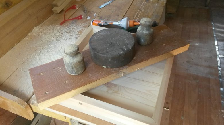 На третий день склеиваю половинки ножек между собой. Садились пазы плотно, даже нагрузку не стал давать.