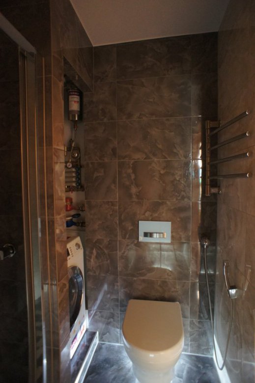 Собственно, типичный такой санузел, где не повернуться, коленками с унитаза достаешь дверь и все в таком роде.