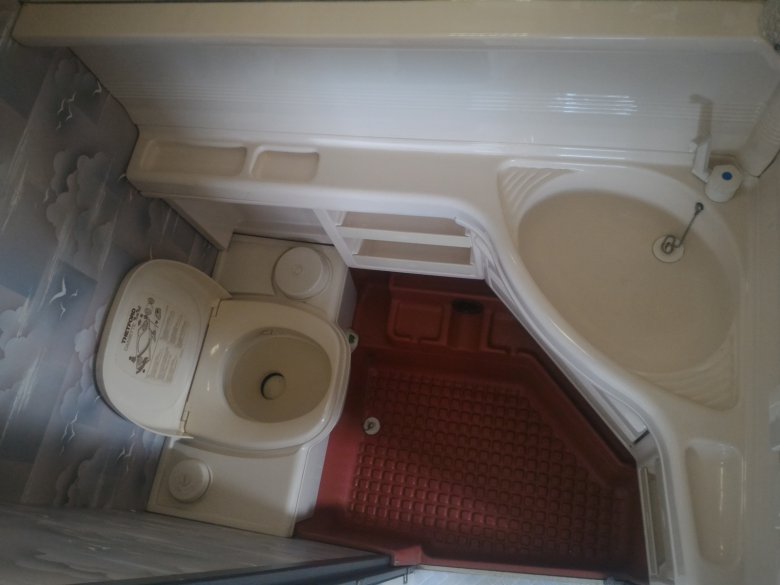 Биотуалет, с поддоном под душ. Самого душа нет, можно использовать дачный "топтун", но мы просто ходим в баню!