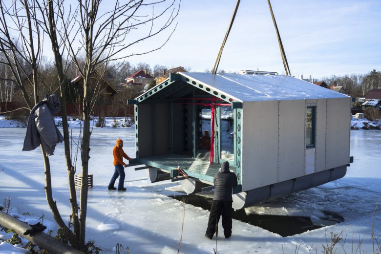 Российская фирма BIO-architects недавно представила одну из последних своих разработок – модульную кабину на воде. Сейчас конструкция опущена на воду одного из озер в Подмосковье и сдается в аренду для желающих скрыться подальше от городской суеты.