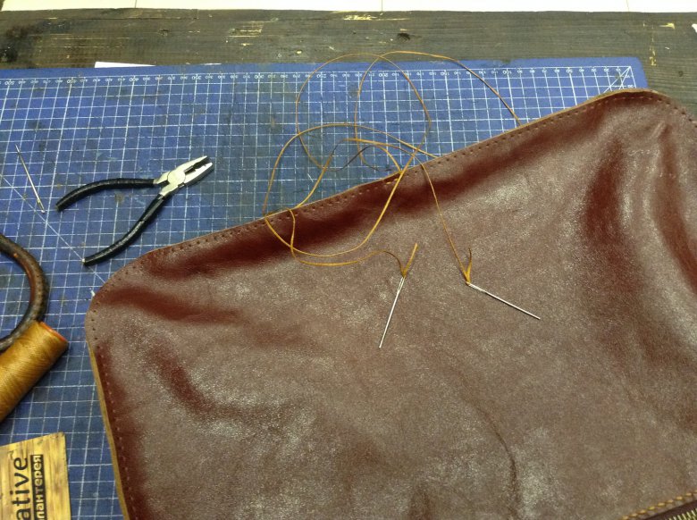 Осталось прошить, обработать края: