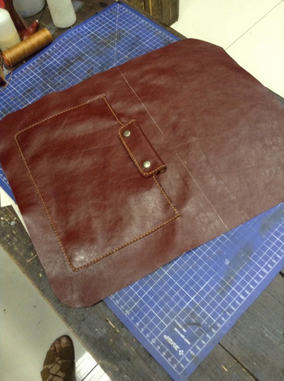 Начинаем потихоньку собирать каждую из частей, начнём с передней, с карманом и застёжкой: