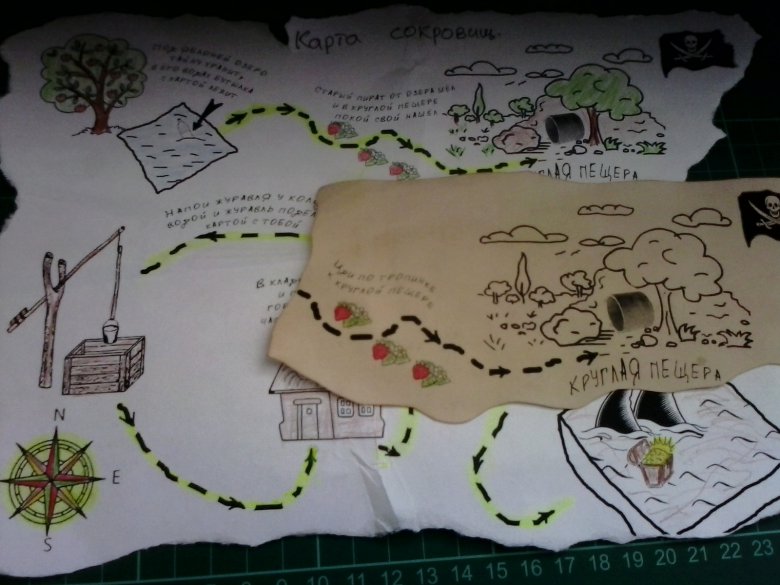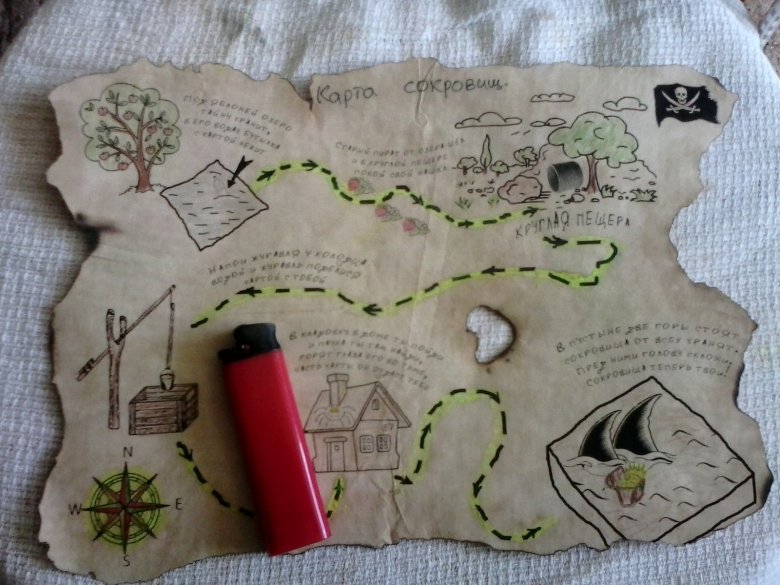 В виду наличия свободного времени и отчаянной тоски от безделия, решил сделать подарок в виде карты для поиска сокровищ и самого сокровища.