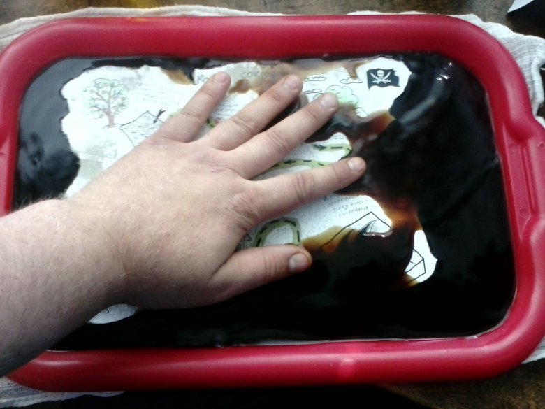 Теперь можно красить и всю целиком. Потребуется кофе и поднос с бортиками (для удобства)