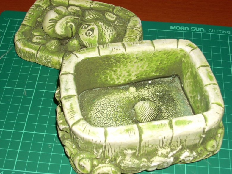 Тем временем с берега чёрного моря приехал ларец для сокровищ. Красивый, но очень хрупкий (из гипса), наверное его только на то и хватит, чтобы откопать. Но ведь старые сундуки и должны быть истлевшими, а сокровища яркими!