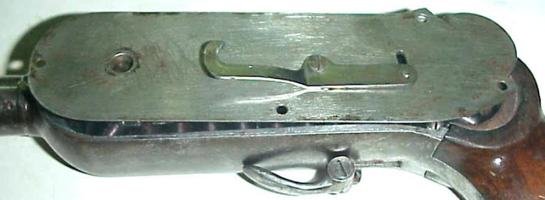 В верхней части рамки установлено окно для заряжания камер цепи. Окно закрывает специальная дверца, выполняющая так же функцию целика.
